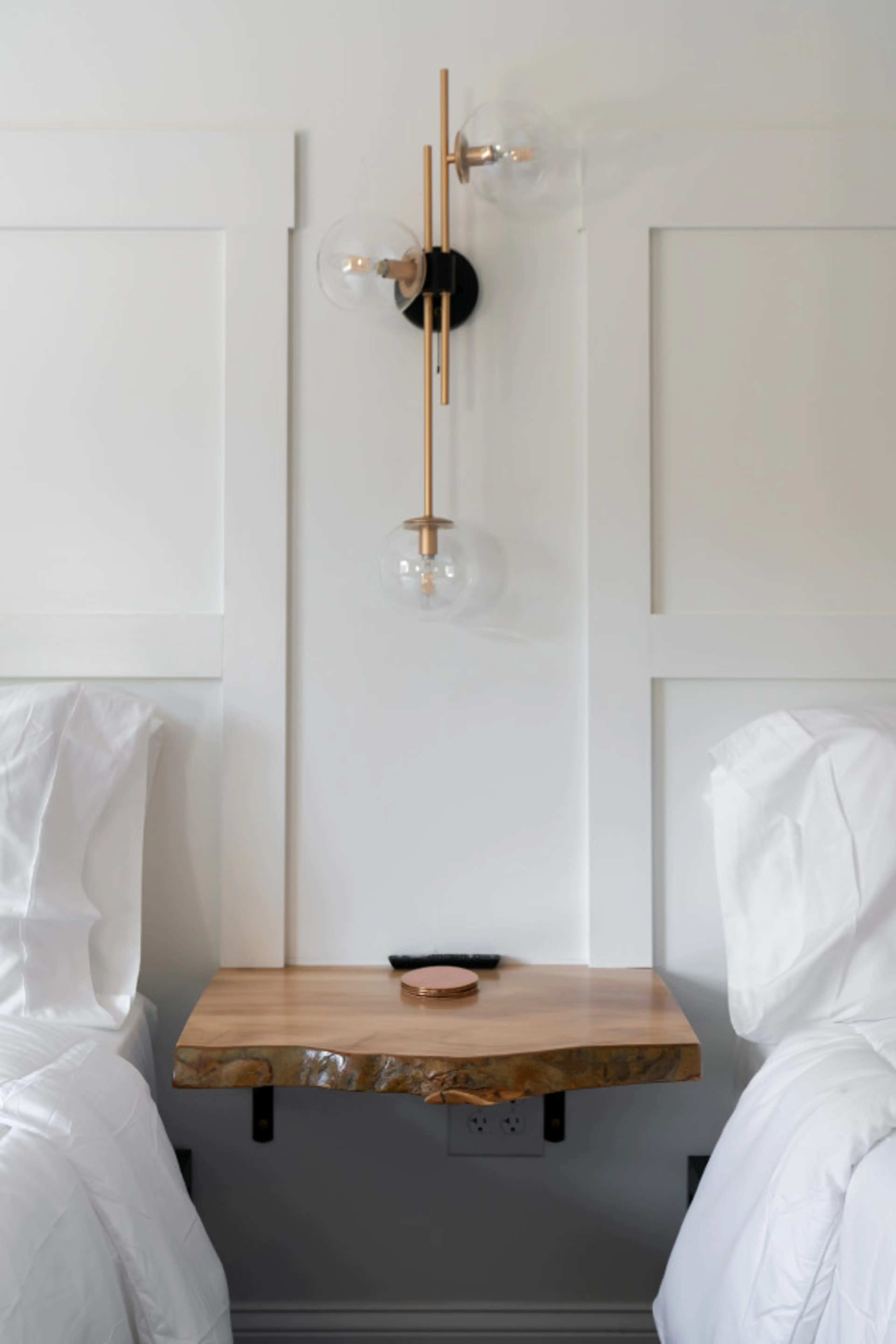 This hip re-designed room has the bold and brilliant and branding throughout. Our Standard Queen features 2 queen beds, a custom built live edge desk, and bench with plenty of room in-between! The bathroom has a full size shower, a anti-fog mirror that has multiple lighting options attached to captu...